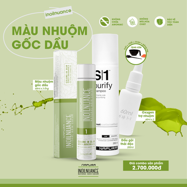 *1 Set gồm Màu nhuộm + Oxy + dầu gội + dụng cụ nhuộm