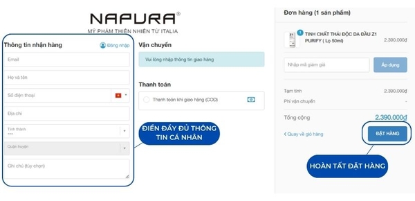 Cách 2: Nhắn tin qua Fanpage Napura Việt Nam